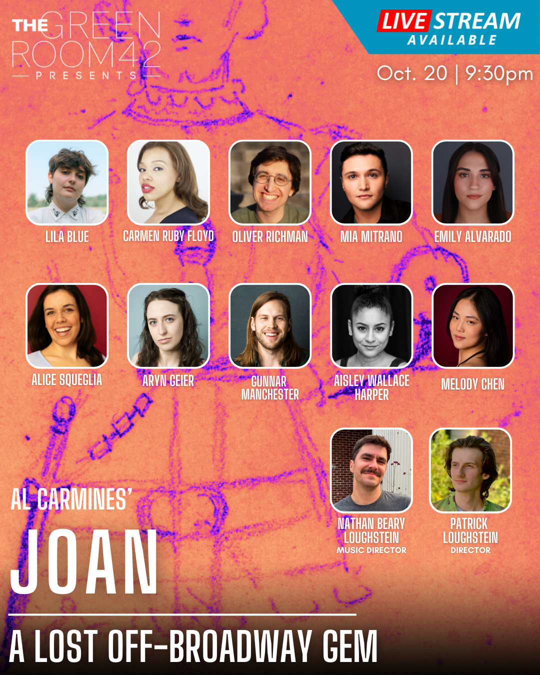 In September 2022, in somewhat of a blur, I sent an email to the folks at Judson Memorial Church. Carmines, who passed in 2005, had worked at Judson as a minister for many years. Judson was previously the home of Judson Poets’ Theatre, an Off-off-Broadway theatre company, also headed by Carmines— nearly all of his work premiered there. While nobody at Judson held the rights to Joan, they kindly put me in touch with Al Carmine’s brother, Ted, who managed his estate. Ted graciously gave me permission to remount Joan for free, as long as I didn’t charge folks for admission. So, within roughly 48 hours of listening to Joan for the first time, I had agreed to bring it back to life. Yet, I still had no idea what was waiting ahead for me