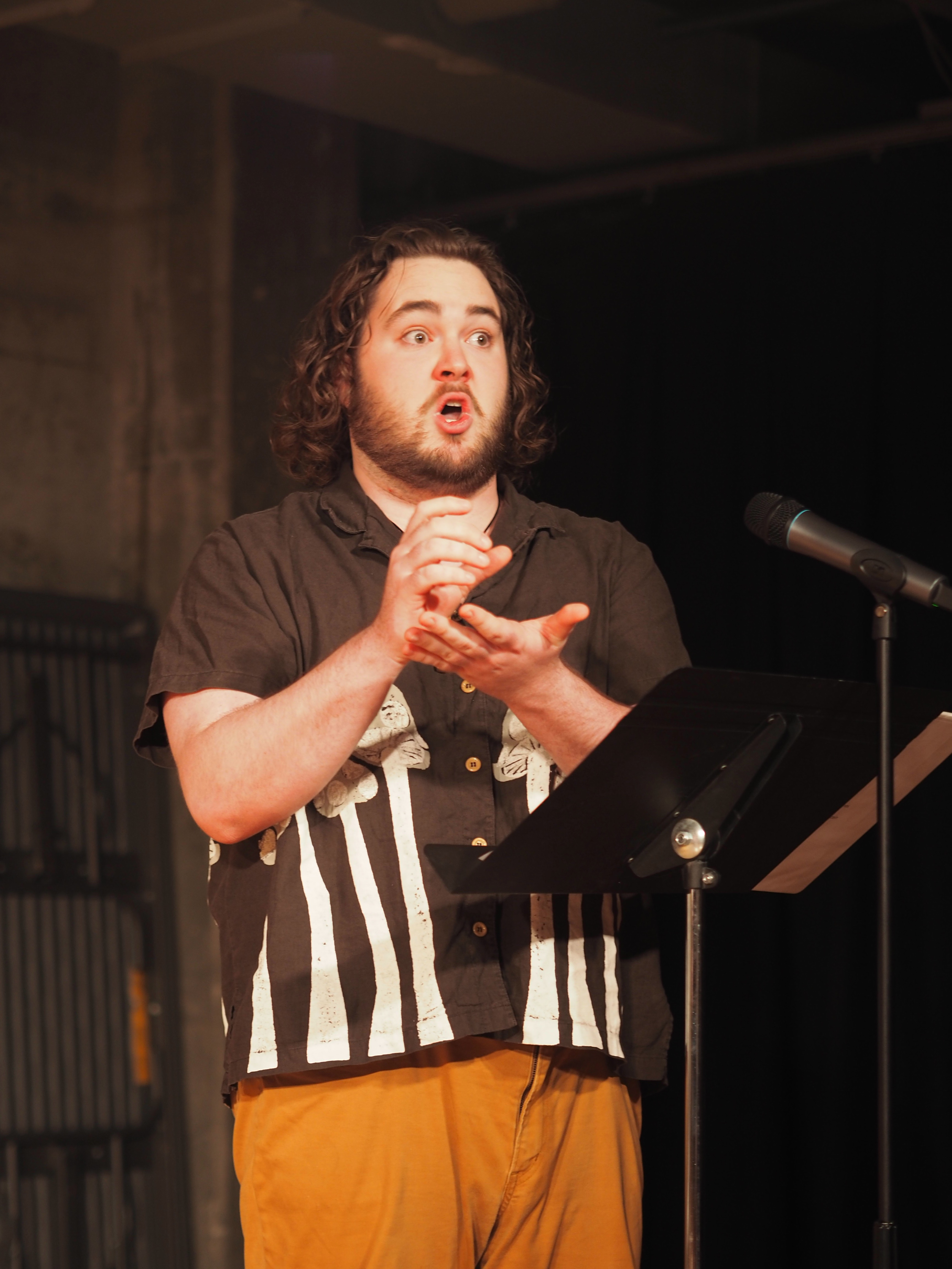 By now, a date (April 24, 2023) and a venue (Woolly Mammoth Theatre Company’s rehearsal hall) were set, and rehearsals were soon to begin. Nathan continued transcribing the score though the entire rehearsal process, working into the late hours of the night. We gathered a wonder group of friends and students, and we put everything together in just under two weeks.